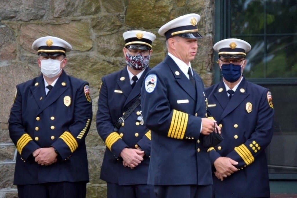 On Sunday, Sept. 27, Union Fire District personnel were joined by members of the Kingston Fire District at the memorial service, planned by the South Kingstown Fireman’s Relief Association. The service slightly differed from the memorial typically held each September, due to COVID-19 restrictions.