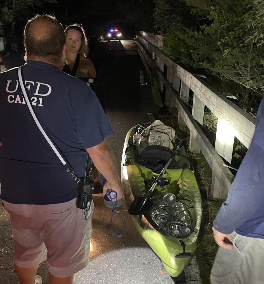 Two UFD members used kayaks to locate the victim and help to guide them back to a place where she could be removed from the river. She was evaluated at the scene by South Kingstown Emergency Medical Services.