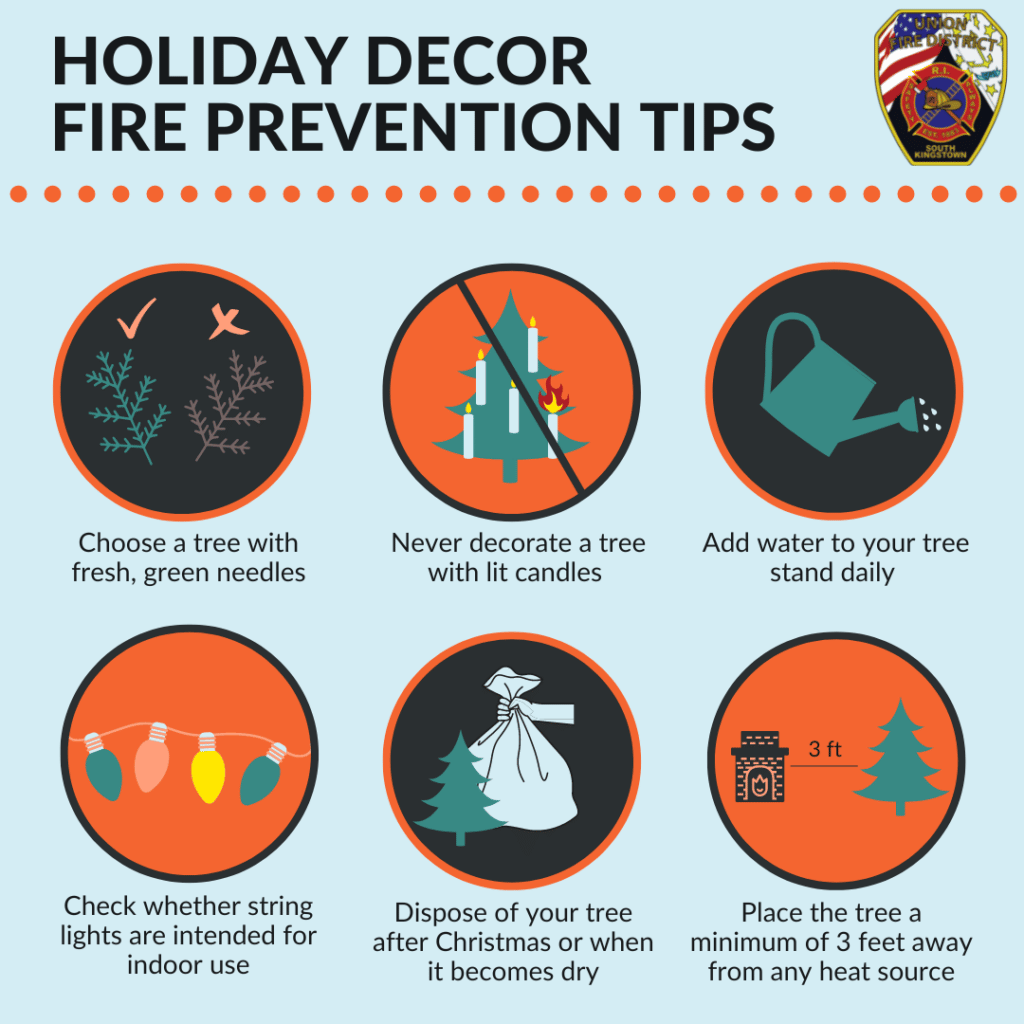 SOUTH KINGSTOWN — Chief Steven Pinch and the Union Fire District of South Kingstown would like to share important fire prevention tips for community members to be mindful of while decorating for the holidays.